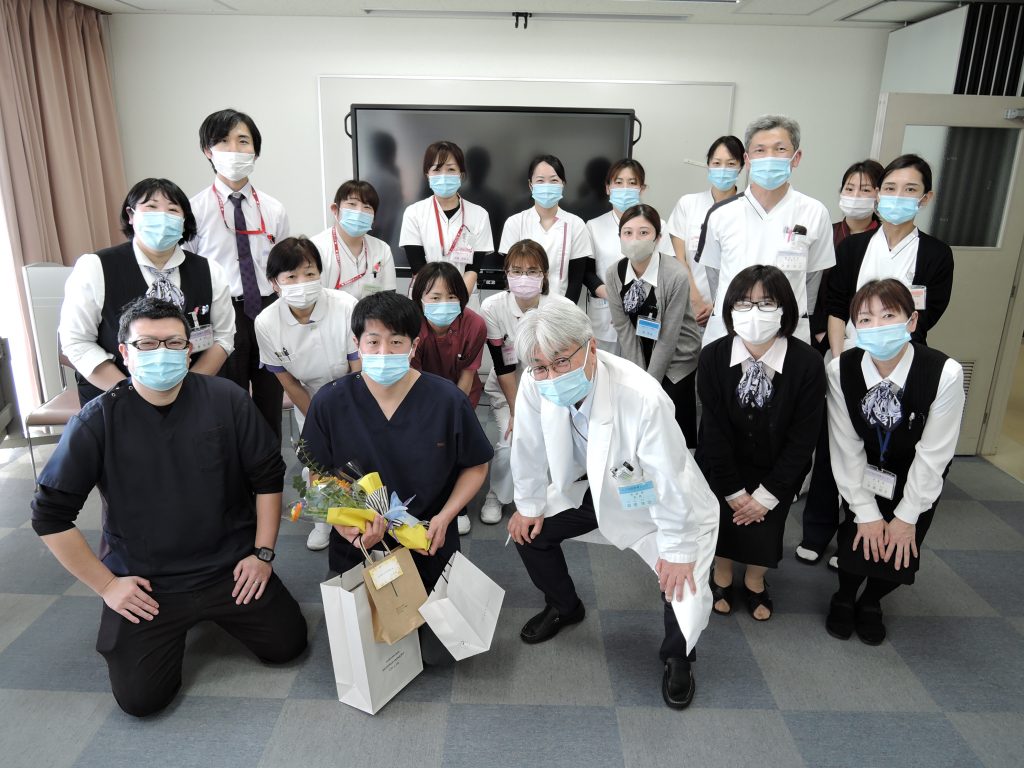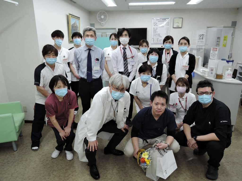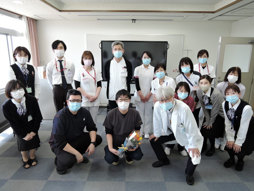 医師送別会を開催しました 3月別れの季節、広島大学病院から来ていただいておりました、 4名の非常勤医師へ感謝の気持ちを込め送別会を開催いたしました。 1年間という短い間でしたが4名の先生方のこれからのご活躍を祈念いたします。